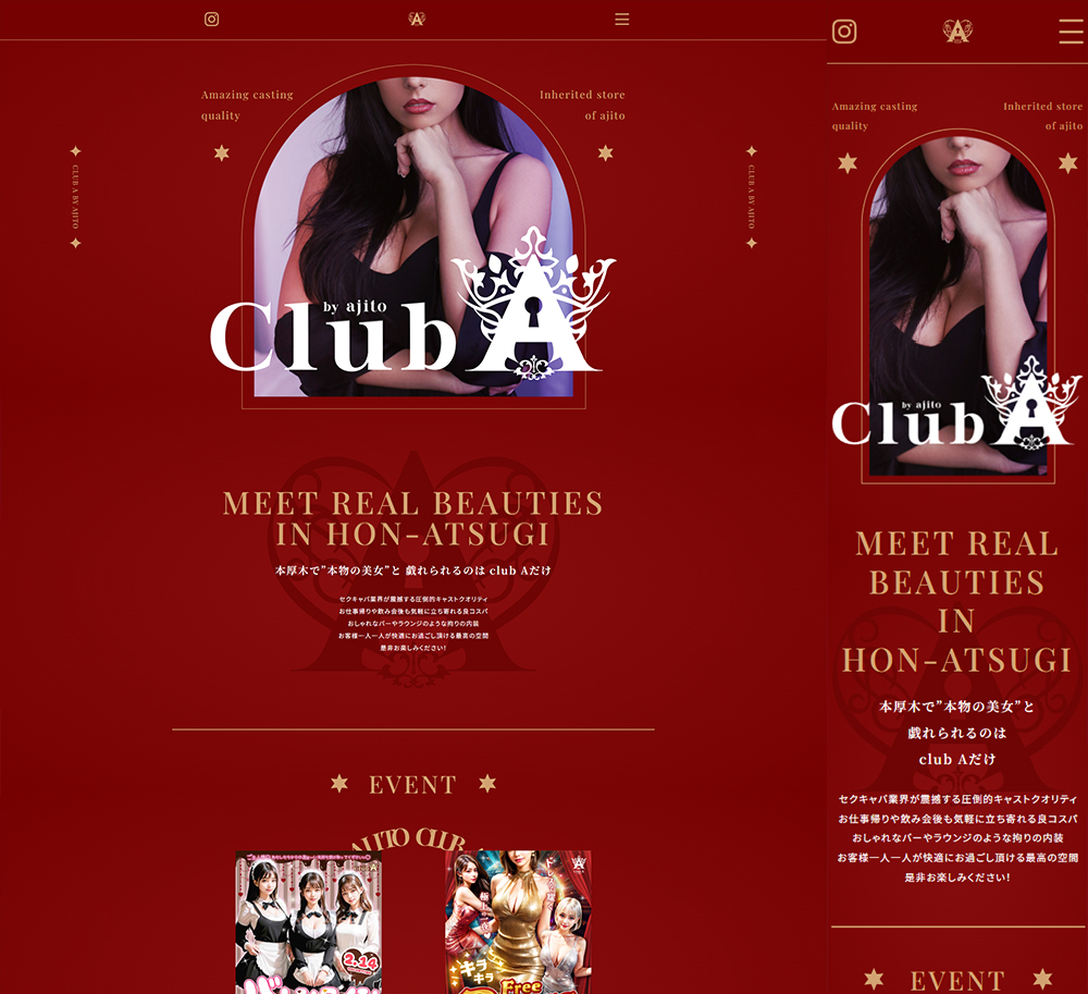 一番の目的がキャストの求人だったので女性に響きそうな綺麗目で可愛いデザインを目指しました。カラーに関しては赤という指定があったのでそちらをメインに金文字で品のあるデザインにしています。