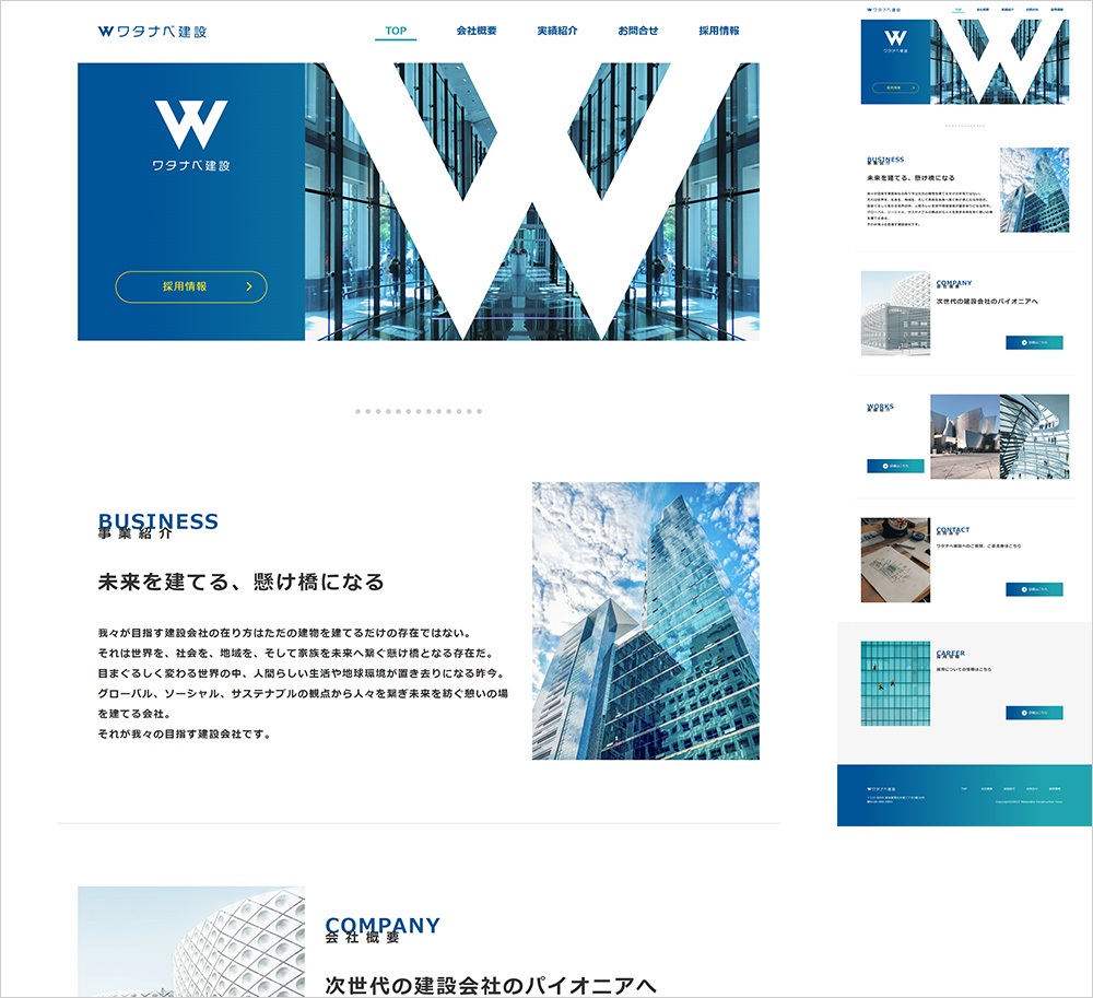 目的である認知度向上のための企業情報等必要な項目を網羅しつつ、余白や文字間隔に余裕を持たせて洗練された企業イメージの構築を目指しました。